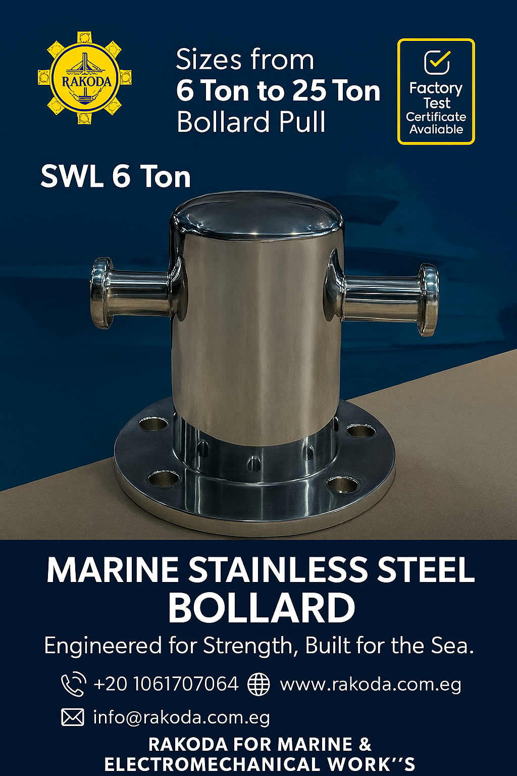 Sizes From 6 to 25 Ton Bollard Pull
